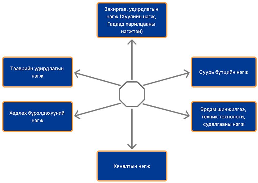 Агентлагийн үйл ажиллагааны стратегийн болон үйл ажиллагааны бүтцийн ерөнхий тогтолцооны загварыг үндэслэн Төмөр замын газрын зохион байгуулалтын бүтцийн нэгж, тэдгээрийн үндсэн үүрэг, чиг үүргийг дараах байдлаар тодорхойлж байна: